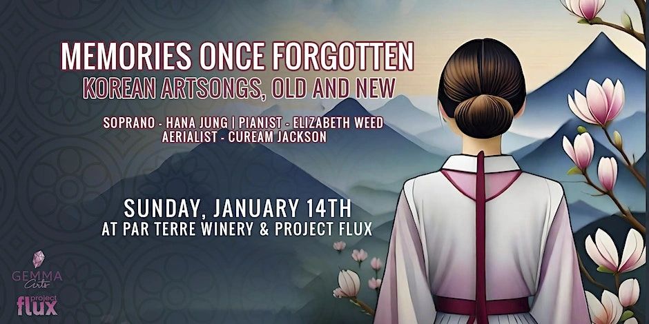 Choreographed artsong and music with visual elements. This is a staged version of Korean artsongs with Elizabeth Weed (piano), Cuream Jackson (aerialist) and Hana Jung (soprano)