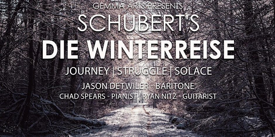 Choreographed artsong and music with visual elements. This is a staged version of Schubert's song cycle Winterreise with Chad Spears (piano), Ryan Nitz (guitar) and Jason Detwiler (baritone)